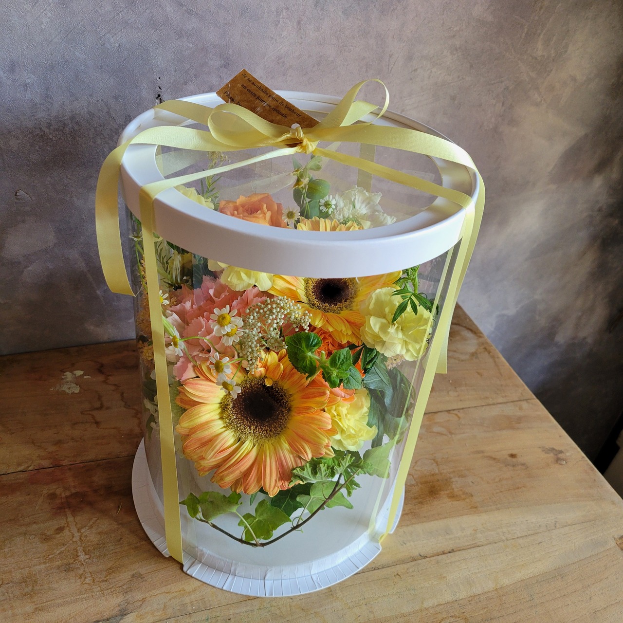 大切な方への特別な贈り物、スペシャルギフトのクリアボックスアレンジメントはいかがでしょうか?各色のお花を選ぶことができ、心を込めたアレンジをお届けします!円柱形のクリアボックスが美しさを引き立て、お相手の方へのお気持ちをしっかりと伝えます。