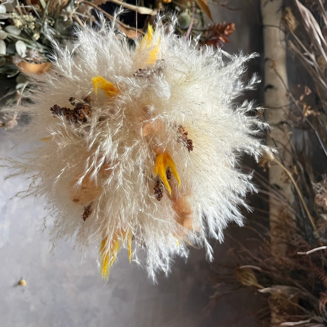 パンパスとドライフラワーのハンギングボール(マンゴー)