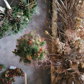 **赤い実とケイトウのクリスマスボール**