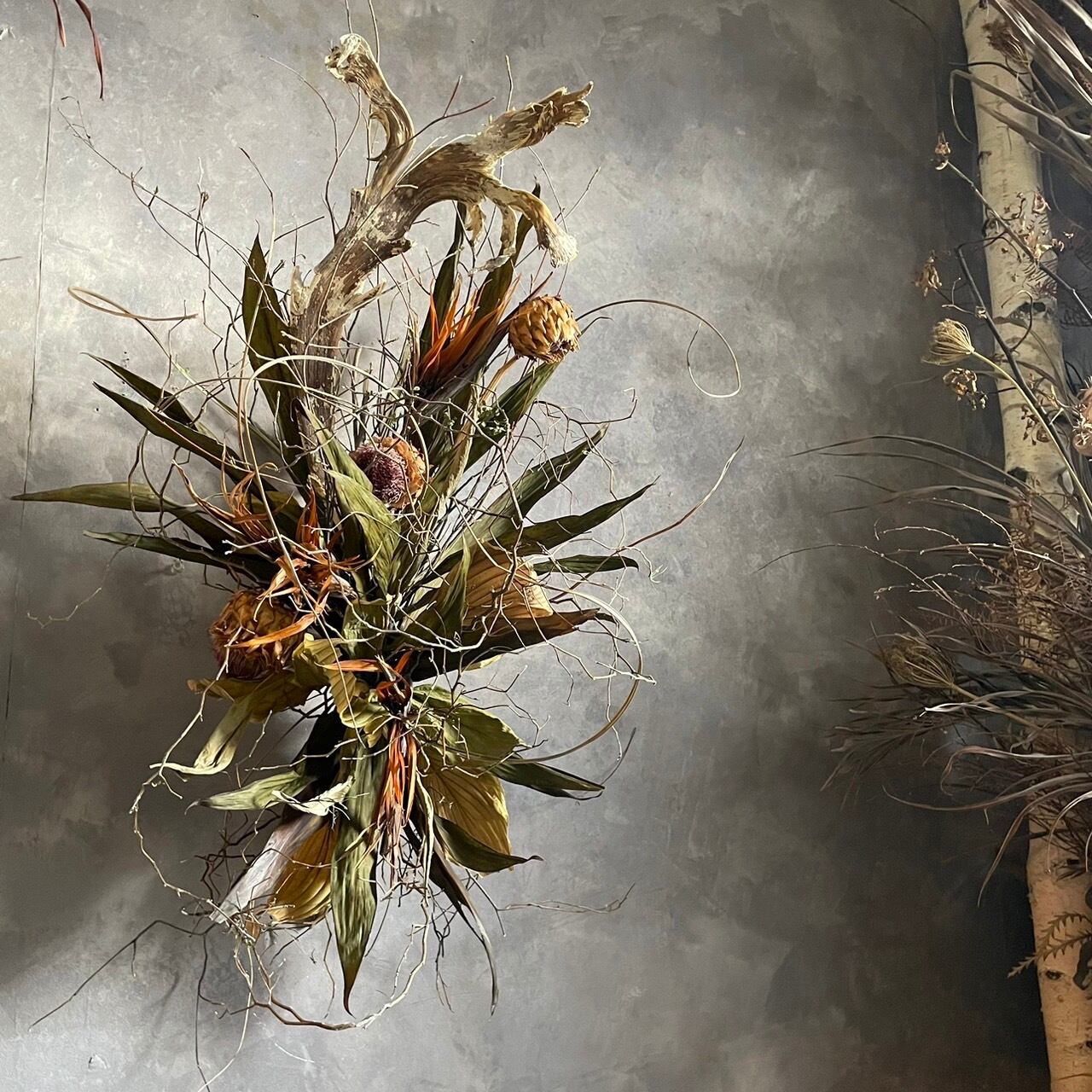 シンプルでカッコいい、インド石化の壁掛けが新登場です!サイズ65cm×40cmのこちらのアイテムは、ドウダンツツジの枝とインド石化をベースにしたデザインで、自分だけのオシャレ空間を演出します。
